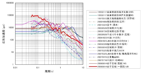 (参考資料) ![]() (備考) 1995〜2008 強震データ (max 600 kine / 10000 gal) http://www12.ocn.ne.jp/~shiosato/hitorigoto/20080614miyaiwa/spect2.jpg |