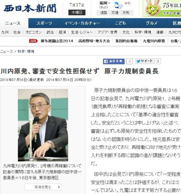 ○ 公開質問状 ■ 原子力規制委員会、御中 川内 ・ 玄海原子力発電所の安全基準等(基準地震動) について、以下 質問致します。 原子力規制委員会(震源を特定しない地震動、H 25.03) http://www.nsr.go.jp/data/000050725.pdf http://www002.upp.so-net.ne.jp/bob-k/genpatu-note3e.htm 兵庫県南部、岩手・宮城内陸、能登半島、鳥取県西部、 新潟県中越、福岡県西方沖、新潟県中越沖、福島県浜通り Mw 6.6 〜 6.9 の、8つの地震について検討するよう明記。(8-11p) 620 x (20^1/3) ≒ 約 1600 ガル が、正しい 基準地震動 です。 (規模差 約 20 倍) 日本国民の生命財産に関わる、最重要の安全基準です。 反論があれば、3日以内に御返答下さい。(2015.0325) Q電 / 内閣府・経済産業省 |
