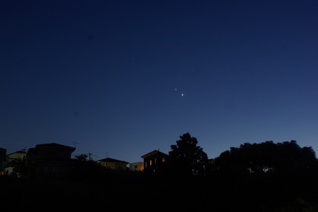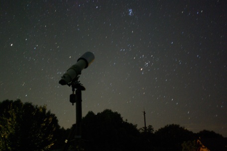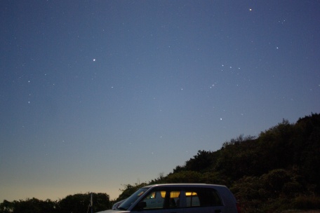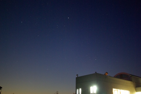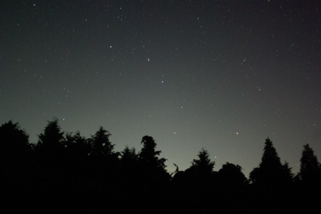 ★ 2011年 7月31日 ・八女星野 八女・星野からの、明け方薄明の星空です。冬の星座が高く昇っていました。 ( F2.8 露出60秒 ISO800 ペンタックスK10D。画像処理は特になし。) ![]() |