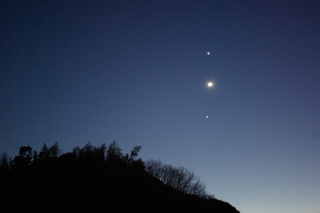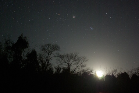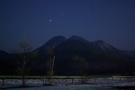 ★ 2011年 2月6日・九重高原 九重高原・長者原からの星空です。積雪があり、高原は一面の銀世界です。輝星はシリウス、月明かり。 ( F2.8 露出30秒 ISO800 ペンタックスK10D。画像処理は特に無し。) ![]() |
