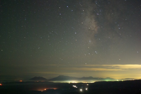 ★ 2010年 4月25日・九重高原 九重高原・長者原からの星空です。透明度は良好(SQM 21.5)、さそり座からはくちょう座に至る銀河が良く眺られました。( F2.8 露出120秒 ISO800 ペンタックスK10D。画像処理は特になし。) ☆ 星空日記帳 2 九重高原(飯田高原)側は、南斜面の久住高原と比較すると、南の阿蘇方面の光害が遮られ、南天が良い条件です。熊本、福岡方面の光害も目立ちません。ただ大分市方面の都市光が、北東低くにあります。 ![]() ![]() ![]()