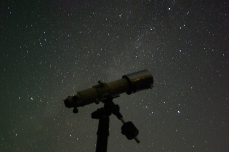★ 2012年 9月 ・ 星はすばる 暑さも和らぎ、秋晴れが続く季節、星見も快適になります。 深夜 0時頃は、M45・プレヤデスが東方に姿を現し、夏の大三角〜ぎょしゃ座・おうし座に至る領域の銀河を、一望に出来る時間帯です。東の地平線には、早くもオリオン座が昇ろうとしています・・ 星空散歩 口径 8cm、25倍前後、眼視のイメージです。 ![]() 65/500 露出 180秒 ISO800 ペンタックスK10D 画像処理は特になし。 |