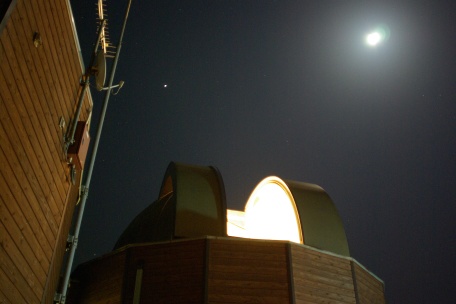 ★ 2010年 5月16日 ・ 金星食 福岡では接近に留まりましたが、数年ぶりの良い条件に恵まれて、その始終を楽しむことが出来ました。 月齢は約2と細かったので、月本体と地球照、そして金星とのバランスも良く、夕空で徐々に接近していく様子が肉眼でも美しく眺められました。次回の金星食は2012年8月、約2年後となります。 また、金星食後の5月21日には、ISAS/JAXA の金星探査機・あかつきの打ち上げが成功しました。 ISAS・金星探査機「あかつき」サイト ![]() 80mm新型アクロマート 露出2秒 ISO800 ペンタックスK10D 画像処理は特になし。 |