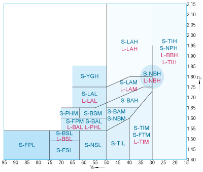 ○ アクロマート用ガラスの特性 アクロマートレンズ用光学ガラス、BSL7(BK7)&TIM2(F2) S−BSL7 の場合、まず硬度が570と硬く、消耗度も 94と小さいので、キズが付きにくくなっています。前面レンズに使っても安心です。耐酸性も1で安心です。特筆すべきは内部透過率の高さで、可視光 400-700nm間全域で99.7%以上(T10mm)ですので、光路の長い正立プリズム等での使用も安心です。熱膨張率も72(10-7/°C)と小さく、化学的耐久性も良好で、高級アポクロマートの相手玉としても使用出来、調達コストも廉価です(10p)。 一方、S−TIM2の場合、硬度が550、消耗度は 150、キズがやや付きやすくなっています。化学的耐久性もやや弱く、400nmでの透過率が94%と低下しています。調達コストも高くなっています(17p)。 ED・フローライトのアポクロマートレンズと比較し、アクロマートレンズは温度順応特性が良好です。 ○ アポクロマート用ガラスの特性 高級アポクロマートレンズ用光学ガラスとして知られる、オハラ S−FPL53の場合、まず硬度が320と極めて軟らかく、磨耗度 451と極めて大きいことにより、容易にキズが付きやすくなっています。耐酸性は3ですので、空気中にあるだけでも劣化します。S−FPL51も同様の脆弱性があります。 保守管理のためには、丈夫なコーティングを素早く行ない、手が触れないようにする必要があります。また熱膨張率も145(10-7/°C)と大きくなっていますので、温度順応等にも注意が必要です。 屈折率の温度係数も一般ガラスと大きな差があります。調達コストは高いです(56p) ![]() オハラ・光学ガラス 一方、蛍石・フローライト CaF2 は、スーパーEDレンズの普及前からレンズ材として使われてきました。 FPL 53が普及し始めたのは1990年代からですが、フローライトは1970年代から、カメラ用望遠レンズ(キャノン)、望遠鏡(タカハシ)等で量産されています。 硬度は極めて軟らかく、330程度、熱膨張率も約 190(10-7/°C)と大きくなっています。温度変化による収差、ピント変化等も大きく、温度順応の時間がかかります。(ちなみにパイレックスは熱膨張率28と小さい)またコーティングの熱にも弱く、ノーマルガラスとは別の特殊技術が要求されます。 また、FPL 53の光学特性との差異はごく僅かですので、フローライトと入れ替えても、多くが僅かにレンズ曲率の調整をするだけで事足ります。 ○ アポクロマート用ガラスの特性 (相玉) フローライト(蛍石・CaF2)&FPL53、FPL51(FK01/PK52A) 対物の相手レンズは、アッべ数が50前後のKF(クラウンフリント)〜LAK(ランタンクラウン)/ オハラ NSL〜LAL等がよく使われます。 LAK/LAL等の高屈折ガラスは、小さなF値でもより優れた収差補正の設計が可能です。 KF/NSLは物理的耐久性がやや弱く、逆にLAK/LALは化学的耐久性がやや弱い傾向です。また、1990年代前後は、KFカテゴリー付近のクルツフリント、特にKZF5がよく使われました。 レンズ設計データ ![]() ショット・光学ガラス |