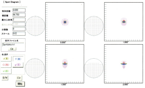 入門&ベテラン用望遠鏡 の共用を考察(1) 一般的に入門機として、アクロマートレンズの屈折望遠鏡を挙げる方が多い様子ですが、これをベテランも使える(一生モノ)機材に出来ないか?、設計コンセプトを少々考察・・ ベテラン観測者が(眼視用に)使える為に必要な要素として、まずはシャープネスと光量。シャープネスに関しては、ストレールレシオ80%、又はそれに近い数値というのが基準になるでしょう。光量に関しては、月惑星・重星用に100倍が余裕で使え、星雲星団・彗星用に10等級のものが捉えられる明るさが必要でしょう(メシエ天体の多くが9−10等級)。 また重厚長大な鏡筒は、より大きな架台を必要とし、稼動率にも影響します。一部のマニア的使用者を除けば使い辛いものです。稼動率の高い望遠鏡のスペックを考える時、狭いスペースでの取り廻し・機動性能、収納スペース等を考慮すれば、当然に小型軽量機材の方が稼動率が高いものとなります。全長の長い鏡筒は、風の影響も大きく、遠征での使用では使い辛くなりがちです。 また、眼視中心機材にあっても、直焦点写真を撮り難いものは希少現象の写真記録を逃してしまい、やはり稼動率に影響します。直焦点写真等は、後付けレデューサで対応した方が便利です。 以上を鑑みると、80mmF 8クラスの新設計アクロマートが良好です。焦点距離 640mm程度に収まりますので、車での遠征・ベランダ観望での取り廻しも、容易に使えるコンパクトサイズです。 設計データ スポット図 (2枚玉 x0.7 レデューサ 装着) 80mm F 8 ( 640mm) → F 5.6 ( 450mm) ![]() レンズ構成 ![]() 基本データ (80mm F8 /fl 640mm) r1 = 315mm/9mm/BSL7 r2 = -280mm/0.2mm/AIR r3 = -280mm/5mm/TIM2 r4 = -2100mm/635mm/AIR |