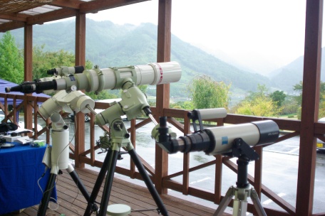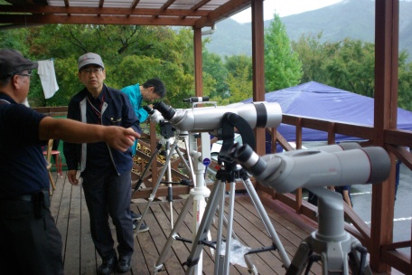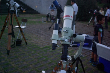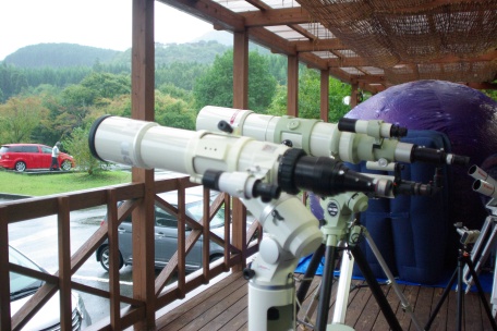 ★ 2013年 10月 5日 ・八女星野 八女市・星野村、池の山キャンプ場にて、天文ハウス・TOMITA 主宰の、九州大観望会がありました。 森の工作館の会場には、タカハシ T0A-130、ビクセン SDP-125 (試作品) 等の高級望遠鏡、及び コーワ ハイランダープロミナー 等の中口径対空双眼鏡がズラリと並び、壮観でした。 夜半前は、社長の光軸調整&レンズメンテナンス講座 (レーザーコリメータ) 等がありました。深夜は天候も回復し、冬の星座が美しく見えていました。SQM 21.2、と良好。 ![]() ![]() ![]() ![]() |