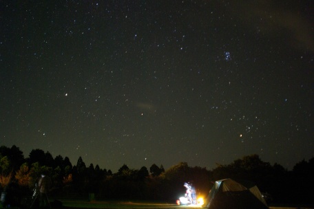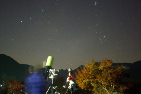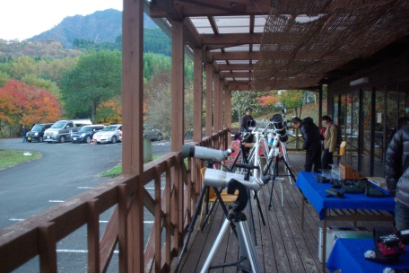 ★ 2014年 11月 15日 ・ 八女星野 八女市・星野村、池の山キャンプ場にて、天文ハウス・TOMITA 主宰の、九州大観望会がありました。 森の工作館の会場には、ビクセン VSD -100 等の高級望遠鏡、及び コーワハイランダープロミナー 等 中口径対空双眼鏡がズラリと並び、壮観でした。 天候に恵まれ、冬の星座が美しく見えていました。SQM 21.0。 ![]() ![]() ![]() ![]() |
