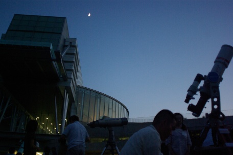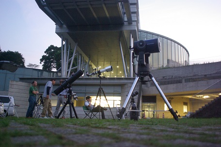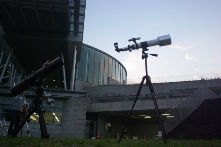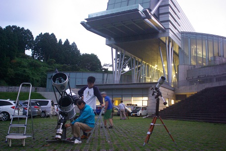 ★ 2015年 8月 22日 ・ 佐賀武雄 佐賀県立・宇宙科学館 にて、第7回天文祭が開催されました。 素晴らしい天気に恵まれて、土星・上弦の月・夏空の星々が美しく眺められました 佐賀・長崎・福岡 etc 天文同好会等の、各種の望遠鏡がたくさん並びました。ギャラリーの方も、 ファミリー(小学生) やグループの方 etc 、沢山集まりました。 ![]() ![]() ![]() ![]() |