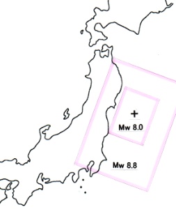 ★ 2014年 2月 ・ 地震マグニチュードの物理的基準 日本国内において長い間、気象庁マグニチュードと呼ばれる独自基準が使われてきました。しかしこれは、 物理的スケールに翻訳出来る基準ではなく、あくまで気象庁内部で通用するのみの独自基準です。 311・東日本で、万単位の死者が出た教訓から、物理的スケールに翻訳可能、かつ世界標準の基準である、 モーメント・マグニチュード Mw への統一が議論されています。 ○ 巨大地震の規模、及び津波高の即時推定 |