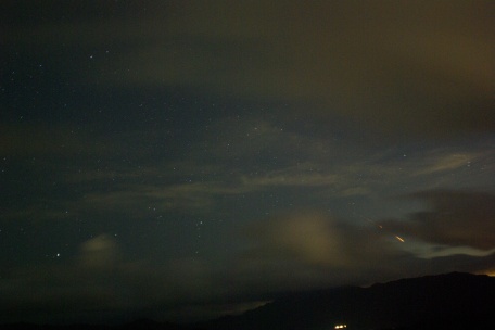 ★ 2010年 9月11日 ・ H2A+みちびき打ち上げ 星野村より、約 300km離れた種子島のH2A+みちびき打ち上げの撮影です。 雲間から出現時の光度は約マイナス2等。急激に暗くなり、約20秒程で見えなくなりました。その後は写真でも確認出来ません。(写真左下の輝星はフォーマルハウト) またエンジン音も聞こえませんでした。 南九州では、かなりの迫力だった様子です。 JAXA・みちびきサイト ![]() 露出30秒 ISO800 ペンタックスK10D 画像処理は特になし。JPEG/AWB |