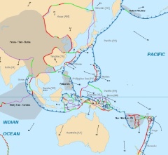 ★ 2011年 11月 ・ フィリピン海プレートを取り巻く世界 日本付近は、北米・ユーラシア・太平洋・フィリピン海 の、4つのプレートに囲まれており、それぞれのプレート境界線で、過去幾度も巨大地震が発生しました。 北西太平洋を中心に見ると、フィリピン海プレートを中心に、北米・太平洋・オーストラリア・ユーラシアの各 巨大プレートが取り巻くような位置関係にあります。即ち、フィリピン海プレートの大きな変動は、周辺プレートにも影響を与えます。 フィリピン海プレート周辺の地震・火山活動 ![]() |