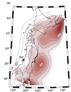 ■ 太平洋プレート〜北米・フィリピン海プレート 固着域分布 (静岡大学) http://www.sci.shizuoka.ac.jp/~geo/TPEarthquake/TPEarthquake.html ※ 関東、及び根室沖に、大規模な固着領域 (アスペリティ)が存在。 ![]() |